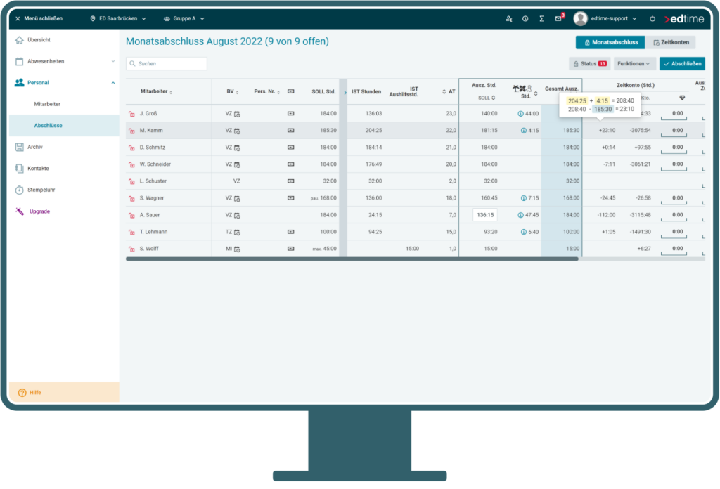 Die Lösung zur einfachen, digitalen Arbeitszeiterfassung ist mit den Herausforderungen und Gesetzesänderungen vom MiLoG 2016 auf den Markt gekommen und seitdem zu einem echten Gamechanger im HR-Bereich geworden. Nicht nur effizient und top in Preis-Leistung, sondern auch transparent und intuitiv. Ob mit oder ohne Lohnverbindung, edtime bietet alle Funktionen für Unternehmen, die eine aktive Zeiterfassung ohne Einsatz- oder Schichtplanung brauchen.